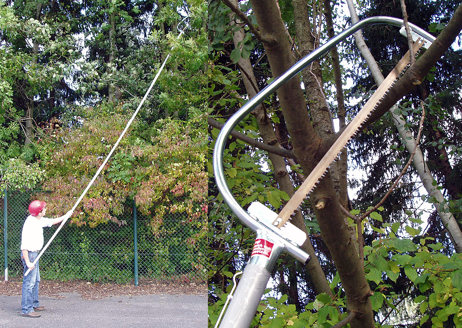 Zum Entfernen stärkerer Äste dient eine aufsteckbare Spezial-Baumsäge.