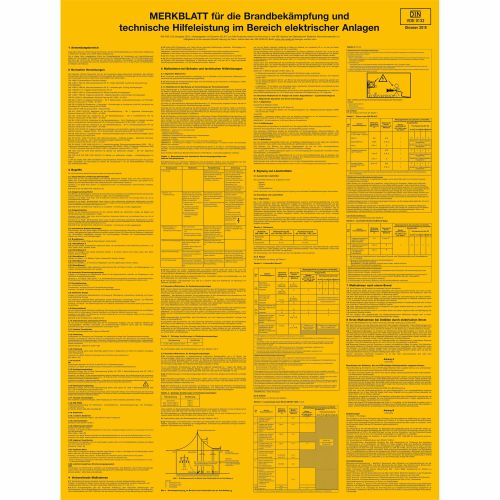 Sicherheitsaushang "Merkblatt für die Brandbekämpfung und technische Hilfeleistung im Bereich elektrischer Anlagen" VDE 0132 aus Kunststoff